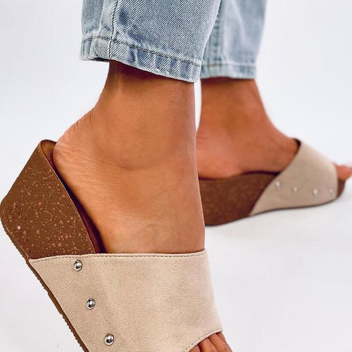 Women's flip-flops on a 6,5 cm high heel and a platform - 3 cm. This is a fashion hit for summer : ) The flip-flops have a great contoured inner insole, so you will feel comfortable even on warm days. You simply must have them! Outer material ? ecological suede. fabric ecological suede Heel height 6,5 cm Platform height 3...