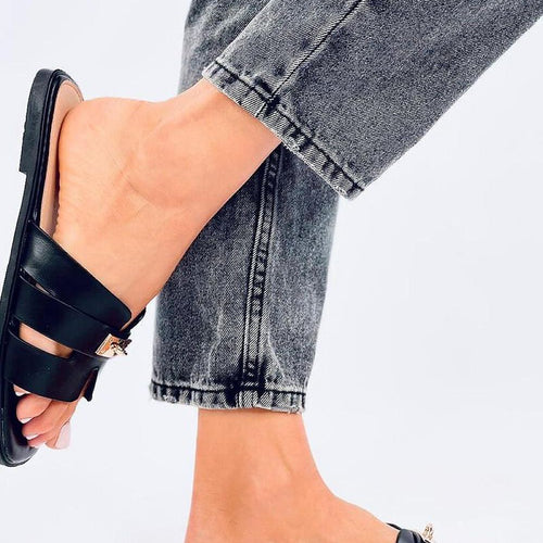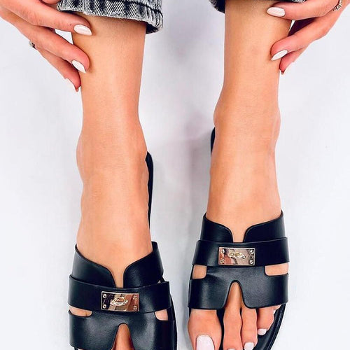 Women's veneer flip-flops elegant. They have a minimalist cut on a square sole with a stylish gold ornament - sure to catch the eye : ) This unique model is a comfortable and practical solution. External material - ecological leather. fabric artificial leather Size Insole lenght 36 23,5 cm 37 24 cm 38 24,5 cm 39 25,5 cm 40 26...