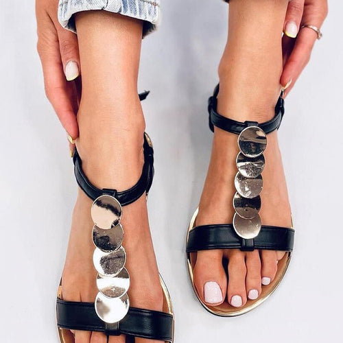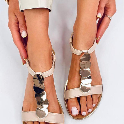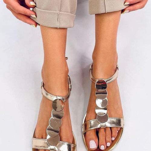 Women's sandals on a flat sole. The model is distinguished by a classic cut with an applique in gold, which will beautifully emphasize the holiday tan.... In these sandals you can fall in love at first sight! Give them a chance to conquer your closet : ) Outer material ? ecological leather. fabric artificial leather Size Insole lenght 36 23,5...