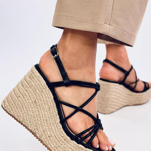 Sandals - espadrilles for women on a platform with a height of 11 cm. Fashionable and at the same time stable platform with a height of 4.5 cm is their invaluable advantage. Crossing straps makes it simply impossible to take your eyes off them.... Do not wait and order them today : ) Outer material ? ecological leather. fabric artificial...
