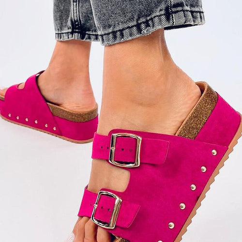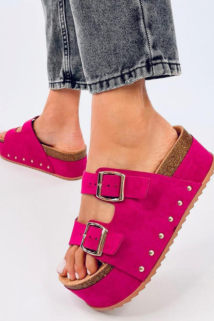 Women's cork platform flip-flops. If you follow the trends then you must have this striking model in your collection! The high sole (6 cm) provides stability, and the profiled inner insole provides comfort with every step. We guarantee that no one will pass indifferently by these shoes : ) Outer material ? ecological suede (black, fuchsia, beige color)/ ecological leather...