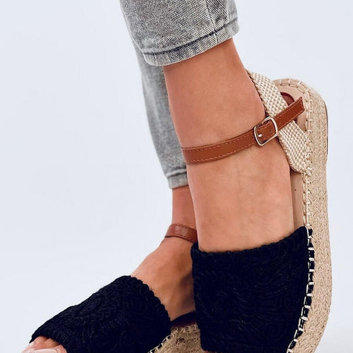 Women's open toe espadrille sandals in boho style. The shoes have a high sole finished with a linen cord and a closure around the ankle. Not only do they look great, they are also incredibly comfortable! Outer material ? fabric + ecological leather. fabric fabric + leatherette Footbed fabric Sole height 3,5 cm Size Insole lenght 36 23 cm 37...