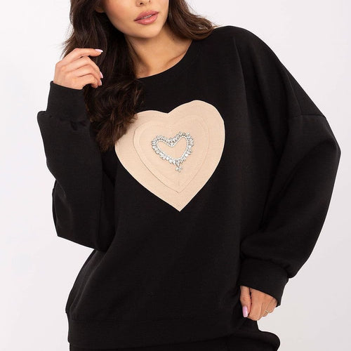 Women's casual sweatshirt is the perfect combination of comfort and subtle elegance. Made of high-quality blend of polyester, viscose, and elastane, it provides softness, comfort, and perfect fit to the silhouette. The standard length model with long sleeves is perfect for everyday wear. The round neckline gives a classic character, and the decorative heart-shaped patch with shiny zircons adds a...