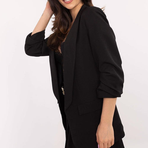 An elegant women's blazer is a versatile wardrobe piece that will work perfectly both for everyday wear and for work. Made of a high-quality blend of polyester and elastane, it ensures comfort, perfect fit, and durability. The model has a lining that enhances comfort and guarantees an aesthetic finish. 3/4 length sleeves with delicate pleats add lightness and stylish character...
