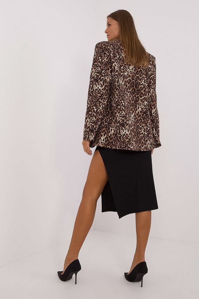 Women's jacket with a stylish animal motif, perfect for various occasions, from everyday outings, through work meetings, to formal and party styling. Made of a combination of polyester and elastane, which ensures comfort and lightness. The jacket has long sleeves and a standard length, as well as an elegant lining that adds to its refined appearance. This model has no...
