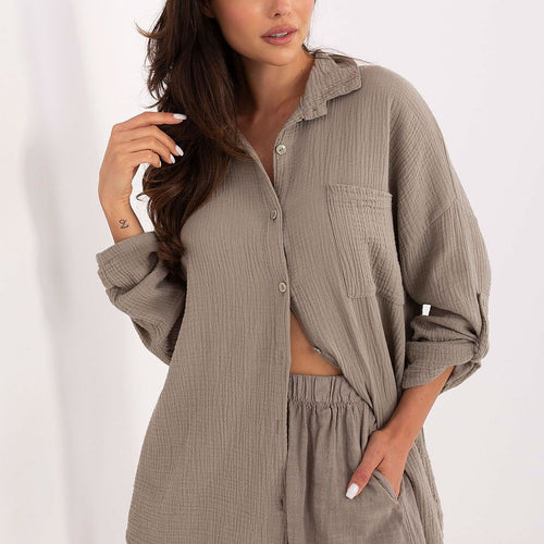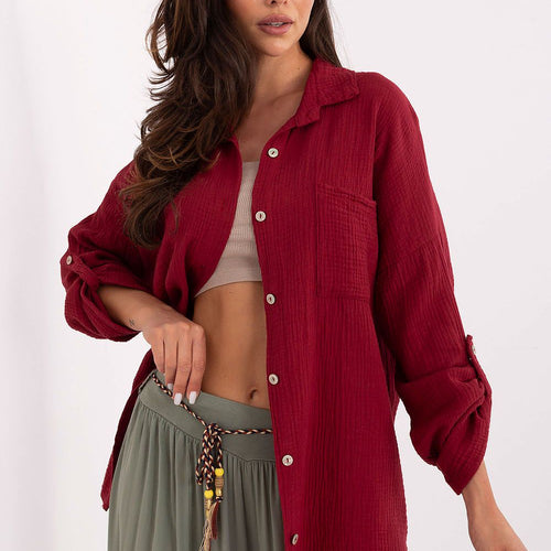 A women's muslin shirt is a light and airy proposal perfect for everyday wear. Made of 100% cotton, it provides maximum comfort and a pleasant feeling on the skin. Its loose, casual cut with a longer length makes it perfect for both classic and more relaxed stylings. The shirt has long sleeves with the option to roll them up, allowing...