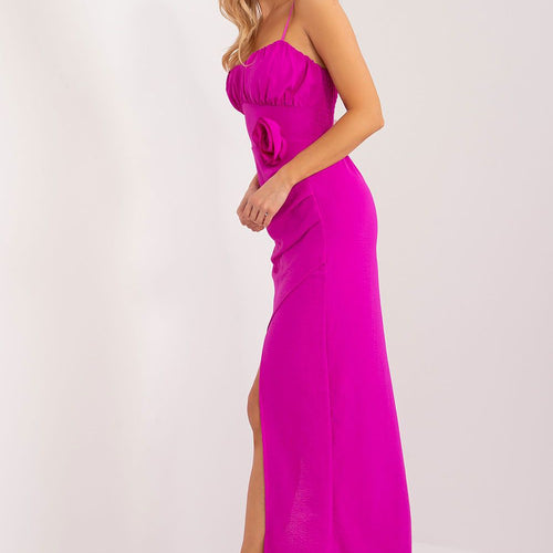 This pencil dress is the quintessence of summer chic and sophisticated design. It is perfect for both elegant outings and party gatherings, adding glamour to any occasion. An unusual detail is the fabric decorative flower placed at waist level, which adds subtlety and romance to the dress. In addition, from the thigh down the decorative slit gives it a subtle...