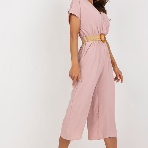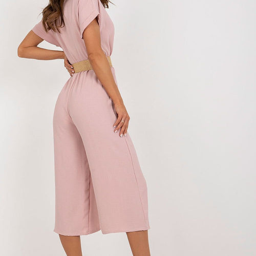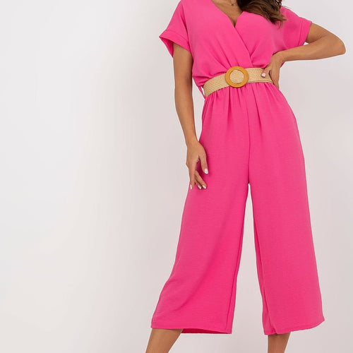 Summer jumpsuit with short sleeves and an envelope neckline. Comes complete with a braided belt. Spandex 5 % Polyester 95 % Size Total length Chest one-size-fits-all 125 cm 108 cm
