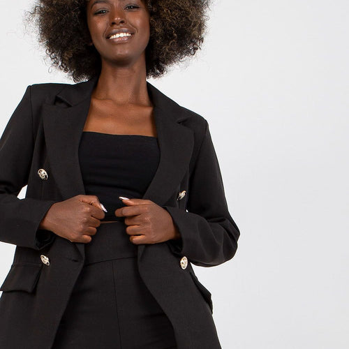 Ladies' jacket with a lining, buttoned. Cushions sewn on the shoulders, imitation pockets. Perfect for many occasions. Spandex 5 % Polyester 95 % Size Chest L 91 cm M 86 cm S 82 cm XL 96 cm XXL 100 cm