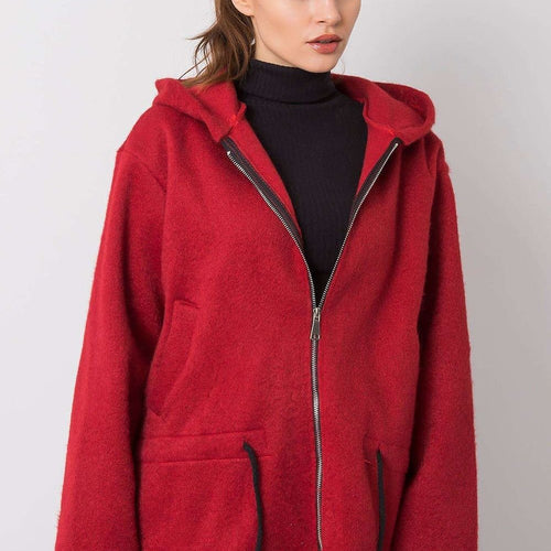 Women's maroon zip-up sweatshirt with a hood. Perfect for everyday use. Polyester 100 % Size Total length Chest one-size-fits-all 63 cm 112 cm