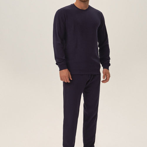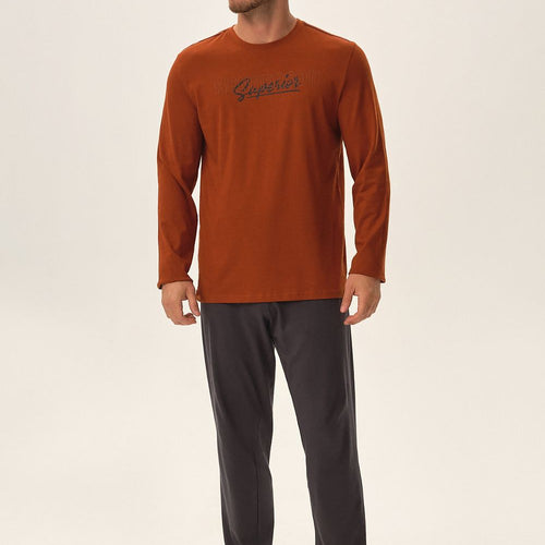 Men's pajamas consisting of a top with a print and long pants are the perfect combination of style and comfort. The top with a round neckline and long sleeves provides comfort while the loose fit allows for freedom of movement. Made of soft and breathable fabric, it guarantees pleasure wearing throughout the night. The long pants without pockets are equipped...