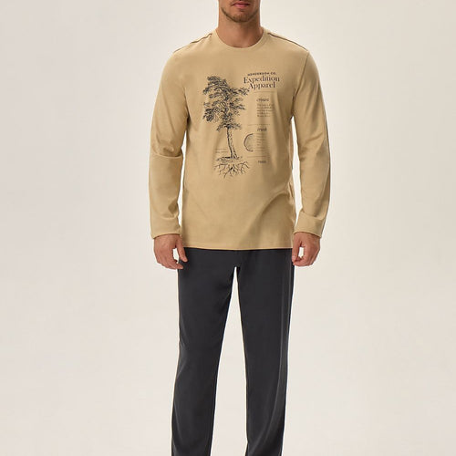 Men's pajamas consisting of a top with a print and long pants are a perfect combination of style and comfort. The top with a round neckline and long sleeves provides wearing comfort, and the loose fit allows for freedom of movement. Made of soft and breathable fabric, it guarantees comfort all night long. The long pants without pockets are equipped...