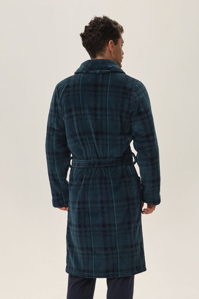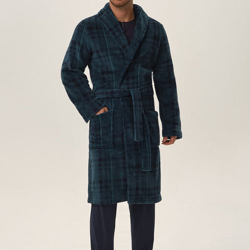 Stylish men's Hazel bathrobe is a proposal for gentlemen who appreciate old-school design and unconventional patterns. The soft, glossy material perfectly absorbs moisture after a bath, and additionally guarantees pleasant warmth during morning coffee. The elegant check pattern brings to mind English classics, and the whole is perfectly emphasized by clearly marked lapels at the collar. Dimensions: Size M: Chest...