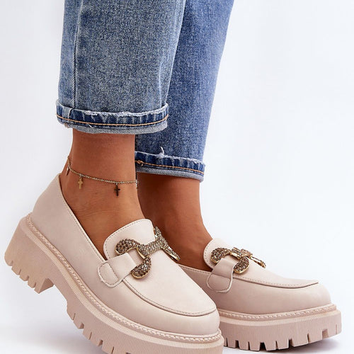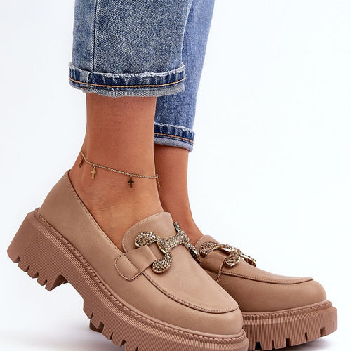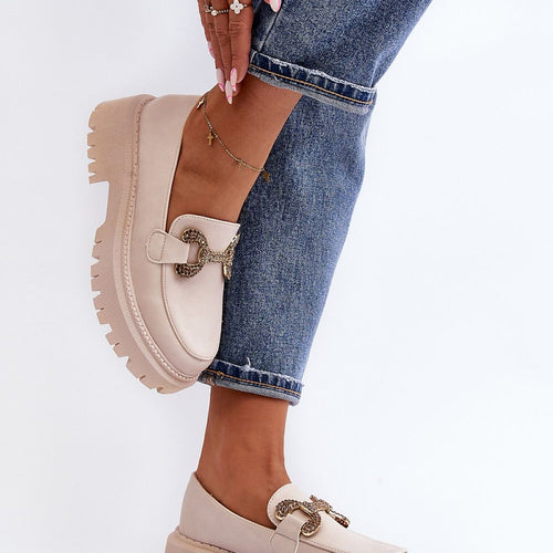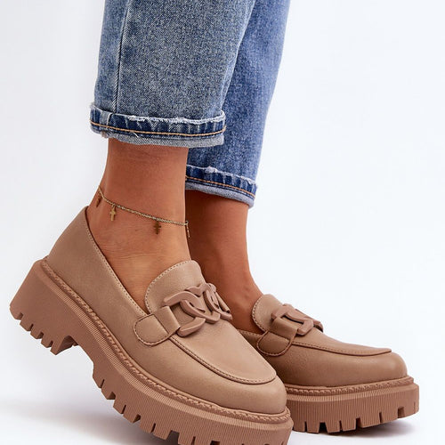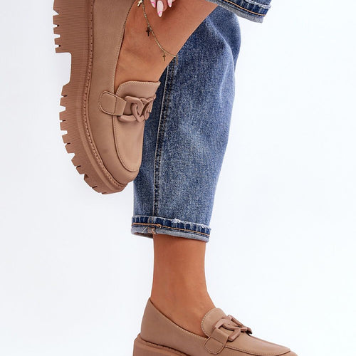 Fashionable women's moccasins set on a massive platform and flat heel. Made of eco leather. Decorated with a chain. Rounded toe caps. Soft insole will ensure comfort during use. A great model for the spring and autumn season! You should definitely have them! fabric artificial leather Footbed artificial leather Upper height 5 cm Heel height 5 cm Platform height 3.5...