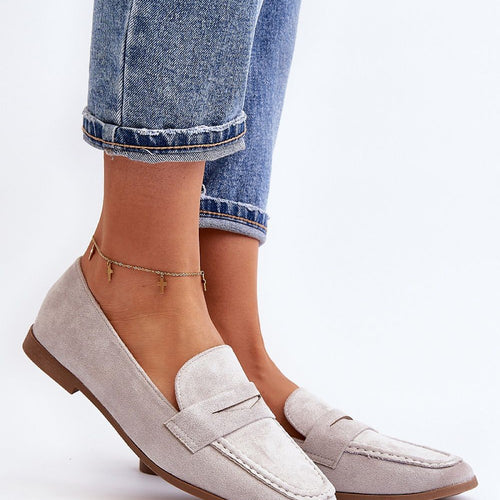 Classic moccasins for women were made of soft eco-suede. Set on a flat heel. Rounded nose pads. Soft eco leather insole will ensure comfort during use. This model is an excellent choice for women who appreciate comfort and style. You should definitely have them! fabric imitation leather suede Footbed artificial leather Upper height 5 cm Size Insole lenght 36 23...