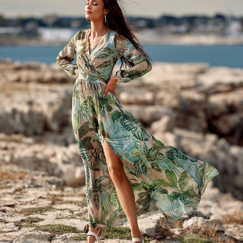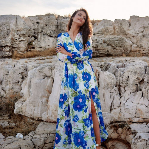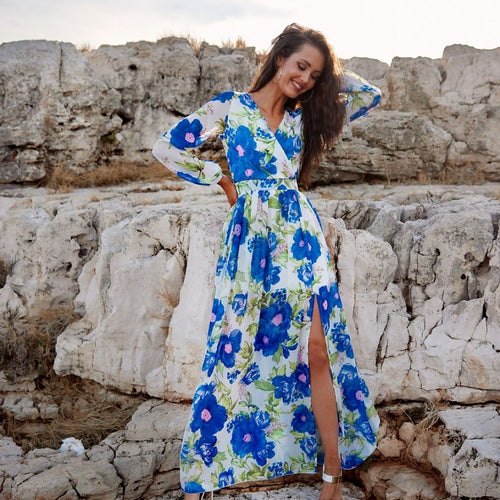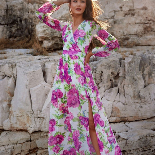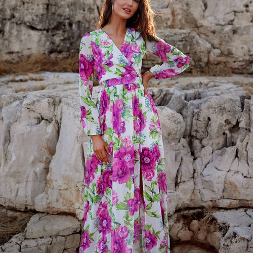 A fashionable dress that has a great cut and maxi length. A dress that you can confidently wear all year round. Very pleasant, airy and delicate to the touch material, it will work well for all kinds of figures. The dress is characterized by a safe maxi length and has a beautiful flowing cut, on which we placed a patterned...