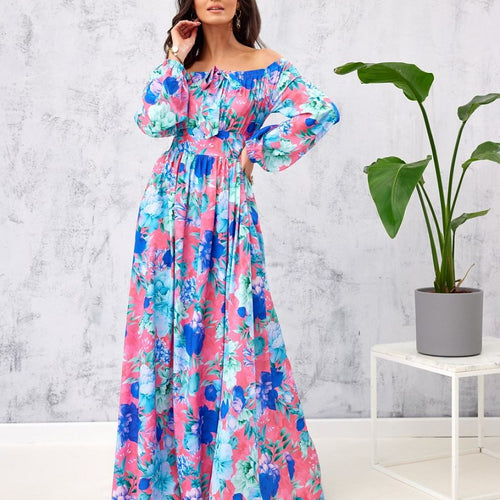 Asymmetrical maxi dress is made of soft, pleasant fabric that will provide comfort to the most demanding women. The dress is worn over the head. It is also characterized by uncovered shoulders that add to its elegant look and an asymmetrical bottom finished with a beautiful ruffle. The dress is distinguished by an elastic waistband that perfectly emphasizes the feminine...