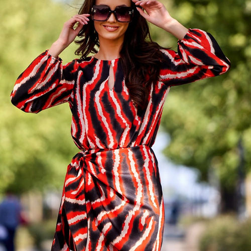 The mini dress with binding on the side and a teardrop at the neckline is made of beautiful patterned fabric that is very comfortable to wear. The dress features a tie at the waist, which adds to its charm. It also has a phenomenal teardrop-shaped neckline and long sleeves finished with an elastic band, which will come in handy during...