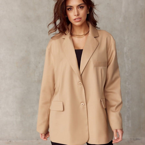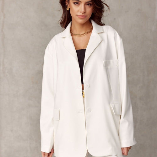 Cut in a voluminous cut with a slightly lowered shoulder line for an impeccable look. The jacket has long sleeves and three buttons located on the side of the cuff. The buttons are in the color of the product. On the sides it has imitation pockets. It will be perfect for all kinds of formal and outgoing creations, as well...