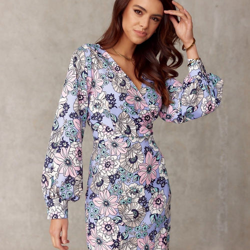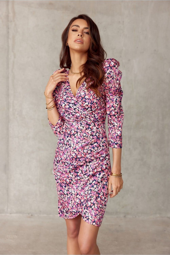 Deep neckline, long buffet sleeves finished with a button cuff. The mini length will highlight the legs in a wonderful way, and the gently flared hem will allow you to conceal minor imperfections and optically slenderize the entire figure. Fastened on the side with a covered zipper. The mini dress with an envelope neckline was created for women who like...
