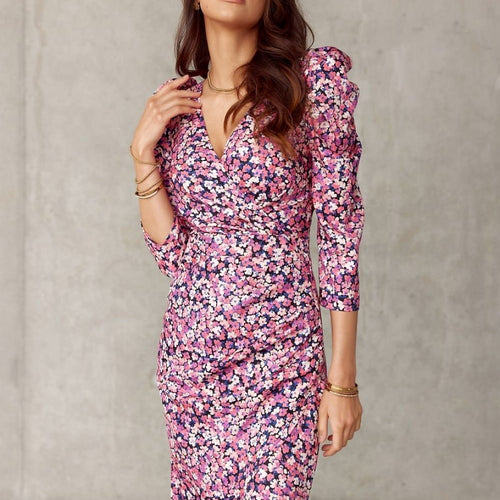 The overlap dress is made of soft, tactile fabric that will provide comfort to the most demanding women. The pre-knee length dress has buffets at the shoulders, which add to the overall character. This model is also characterized by creases along the torso, which optically slims the figure. In addition, the dress has a layered, envelope neckline that elongates the...