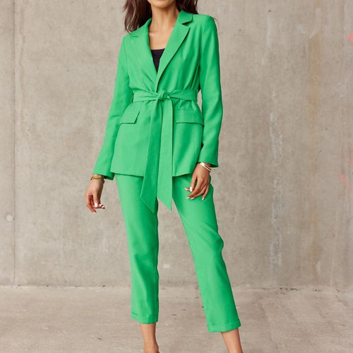 Elegant women's jacket with binding is made of very good quality fabric, so it will be durable and comfortable. The jacket is characterized by a longer cut and a tie at the waist, which will beautifully emphasize it for us. The jacket also has decorative pocket patches. Tied jacket with a long cut will be ideal for business meetings as...