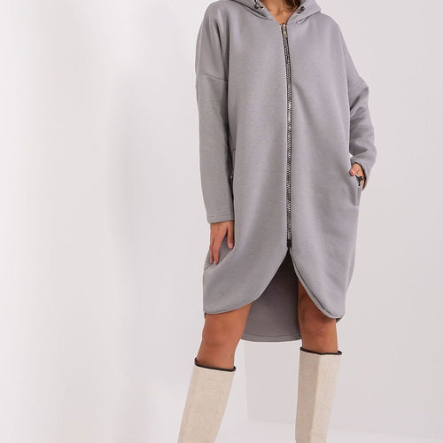 Sweatshirt with an extended cut, zippered. Sweatshirt with long sleeves and a hood. Slip-in pockets on the sides. Cotton 90 % Spandex 10 % Size Chest L/XL 91-96 cm S/M 82-86 cm