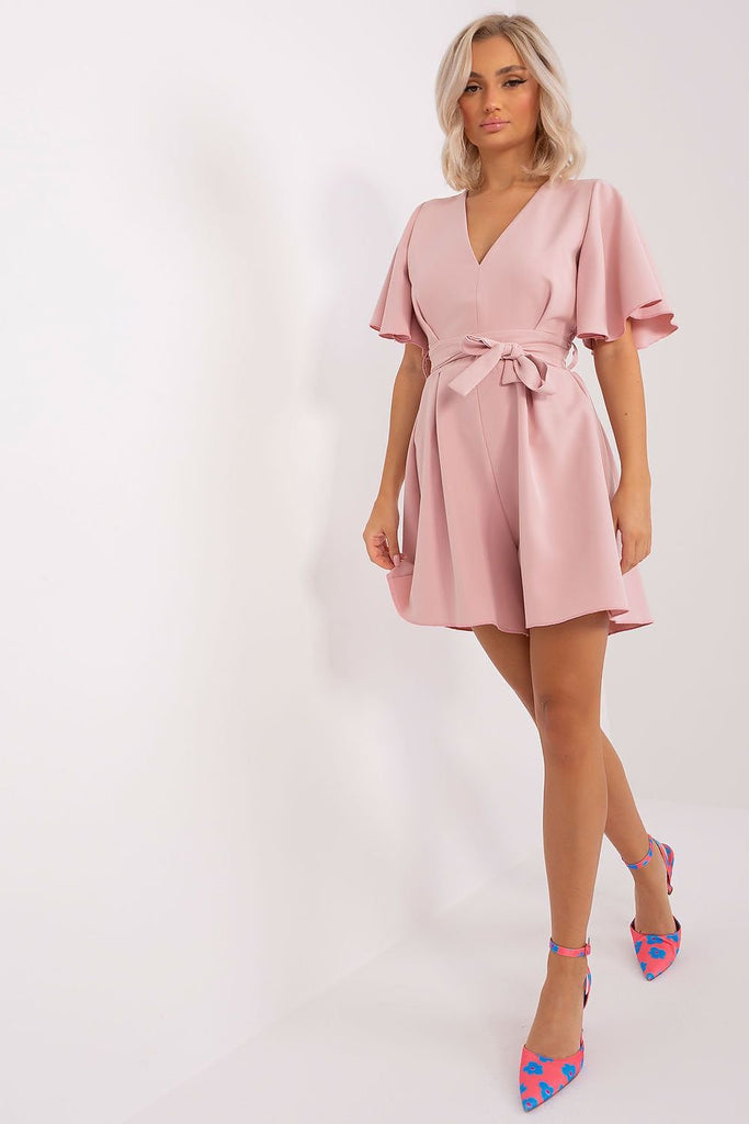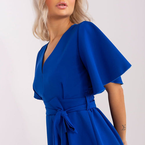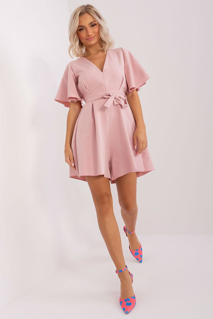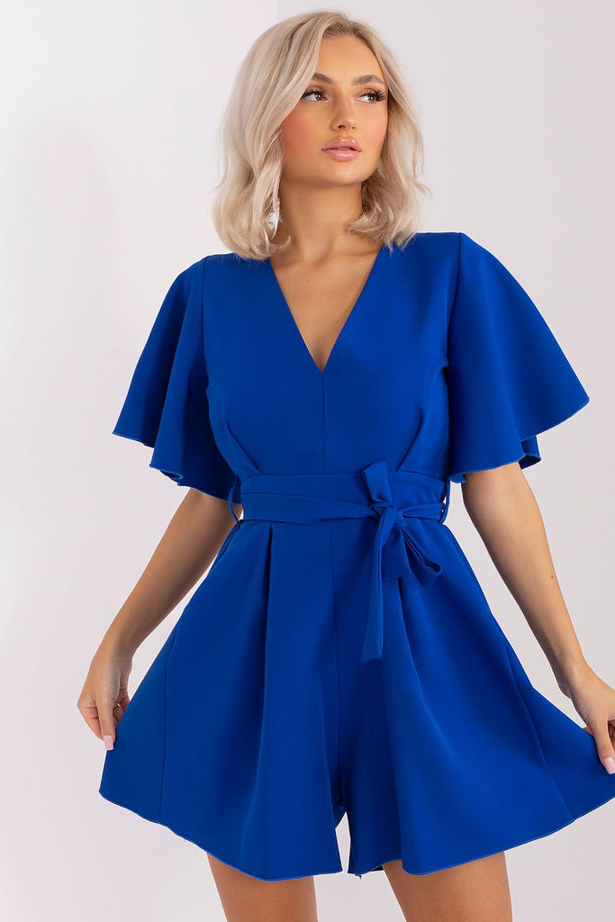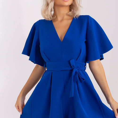 Summer jumpsuit with short sleeves and a heart neckline. There is a cutout on the back and a tie at the waist. A proposal ideal for many occasions. Polyester 70 % Viscose 30 % Size Chest Waist L/XL 91-96 cm 84-96 cm S/M 82-86 cm 72-86 cm