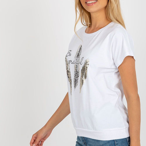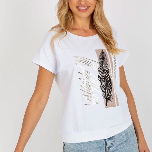 Cotton blouse with short sleeves and a round neckline. Decorative print on the front. Cotton 90 % Spandex 10 % Size Chest L/XL 91-96 cm S/M 82-86 cm
