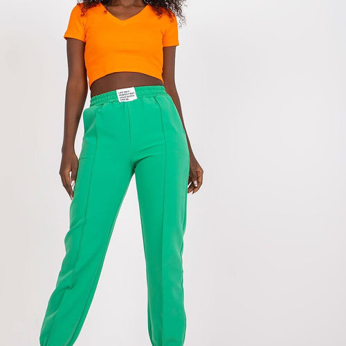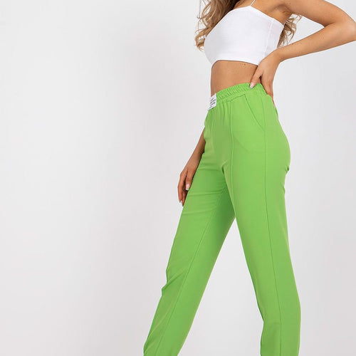 Women's fabric pants with an elastic band at the waist. Pants with high rise, on the sides there are slip pockets. Spandex 5 % Polyester 95 % Size Hips width Waist width L 102 cm 84-90 cm M 94 cm 78-86 cm S 90 cm 72-80 cm XL 106 cm 88-96 cm XXL 110 cm 92-100 cm