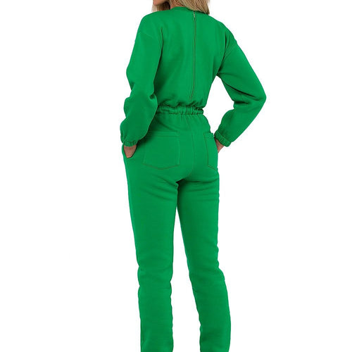 Women's suit with long sleeves, zippered. On the front at the height of the waist ties. Slip-in pockets on the sides. Designed and sewn in Poland. Cotton 90 % Polyester 10 % Size Hips Chest Waist L 108 cm 106 cm 92 cm M 103 cm 101 cm 87 cm S 98 cm 96 cm 82 cm XL 113 cm...