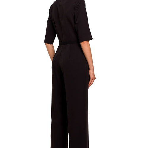Elegant and minimalist, overalls with straight legs and a fitted top that ends in a collar. Covered zipper, pockets on the sides. Thanks to its simplicity combines with various accessories and suits all occasions as well as for everyday wear to work. Spandex 5 % Polyester 95 % Size Hips Chest Waist L 114 cm 94 cm 82 cm M...