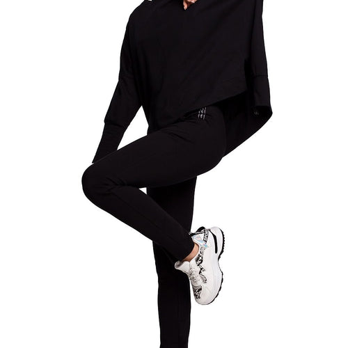 Black women's trousers in a fashionable palazzo cut are a perfect element of soft-office style, going beyond the canon. The unconventional cut and decorative press-studs break the classic office styling, while the pleasant-to-touch viscose-blend fabric ensures high wearing comfort. Spandex 5 % Polyester 60 % Viscose 35 % Size Lenght Inseam Hips width Waist width 34 112 cm 23.5 cm...