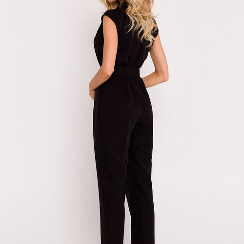 The jumpsuit has now entered the closet dedicated to special occasions for good. Our fantastic jumpsuit with elegant wide legs is perfect for big outings thanks to its unique top with a roll-up collar and decorative shoulder closure and double decorative front. The suit is unlined and fastens with a covered zipper. Spandex 5 % Polyester 95 % Size Lenght...