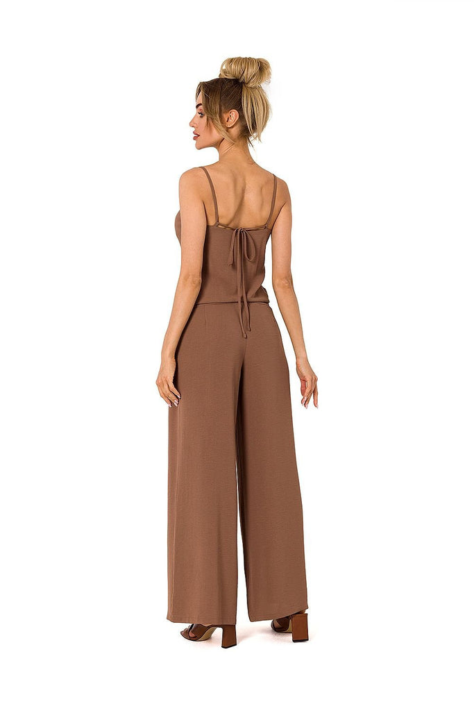 Pantsuit with draped neckline and on thin straps tied at the back. The suit has an elastic waistband and slip pockets on the sides. Spandex 5 % Polyester 95 % Size Hips Chest Waist L 108 cm 90 cm 78 cm M 103 cm 85 cm 74 cm S 98 cm 80 cm 70 cm XL 113 cm 95 cm...