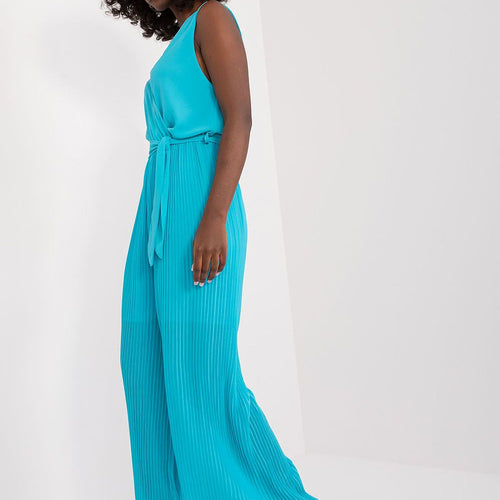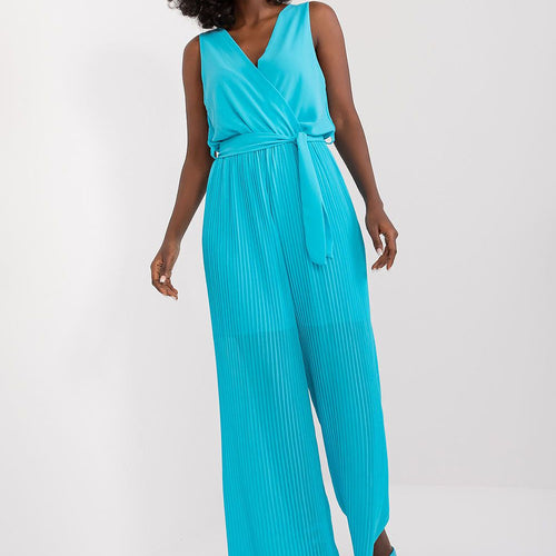 Summer sleeveless jumpsuit, has a lining. Jumpsuit with envelope neckline, pleated bottom, tie at waist. Perfect for many occasions. Spandex 5 % Polyester 95 % Size Total length Chest one-size-fits-all 140 cm 94 cm