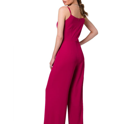 Elegant jumpsuit with a fashionable cutout and crease at the neckline. The suit is fastened with covered zippers, on the sides and on the back. The jumpsuit is unlined and comes with a belt of the same color. Spandex 5 % Polyester 95 % Size Hips Chest Waist L 116 cm 100 cm 80 cm M 111 cm 95 cm...