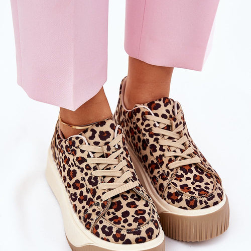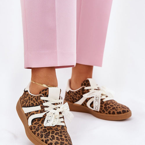 SAVANNAH WHITE/LEOPARD are sneakers that combine classic white with a bold leopard pattern panel accent. Elegant gold eyelets on the laces add a luxurious character to them, making them a unique element of any outfit. The chunky platform provides comfort and cushioning throughout the day, while also highlighting the modern, streetwear design. Outer material: Synthetic leather Inner insole: Fabric fabric...