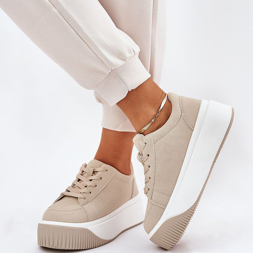 Women's sports shoes made of eco suede. Mounted on a massive platform. Rounded toes provide comfort, and the soft insole further enhances wearing comfort. Perfect for everyday stylizations, these shoes combine a modern look with functionality, making them an excellent choice for any occasion. fabric imitation leather suede Footbed tkanina plus piano Upper height 7.5 cm Platform height 5 cm...