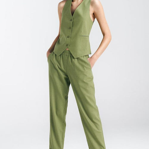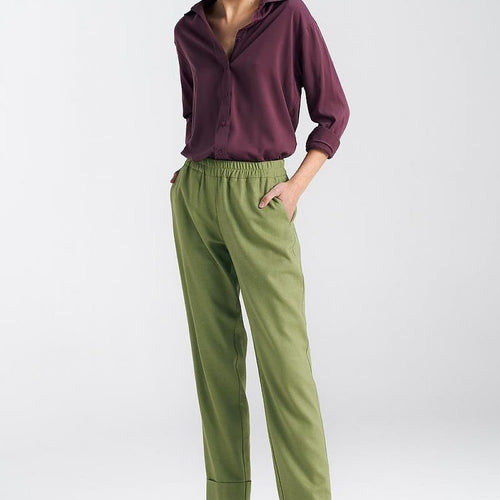 Women's pants with a relaxed fit and straight legs are the perfect choice for women who value comfort and freedom of movement, without sacrificing elegance and style. Made of high-quality material containing viscose, linen and cotton, they provide comfort of wear and a pleasant feeling on the skin. Their intense green color, reminiscent of a fresh pistachio shade, adds energy...