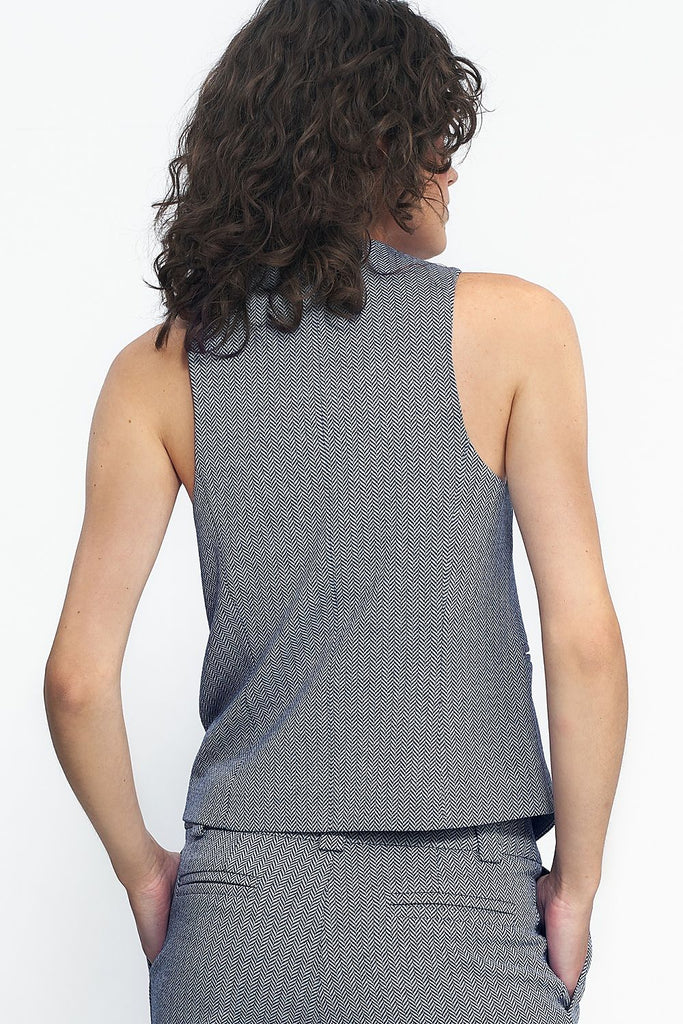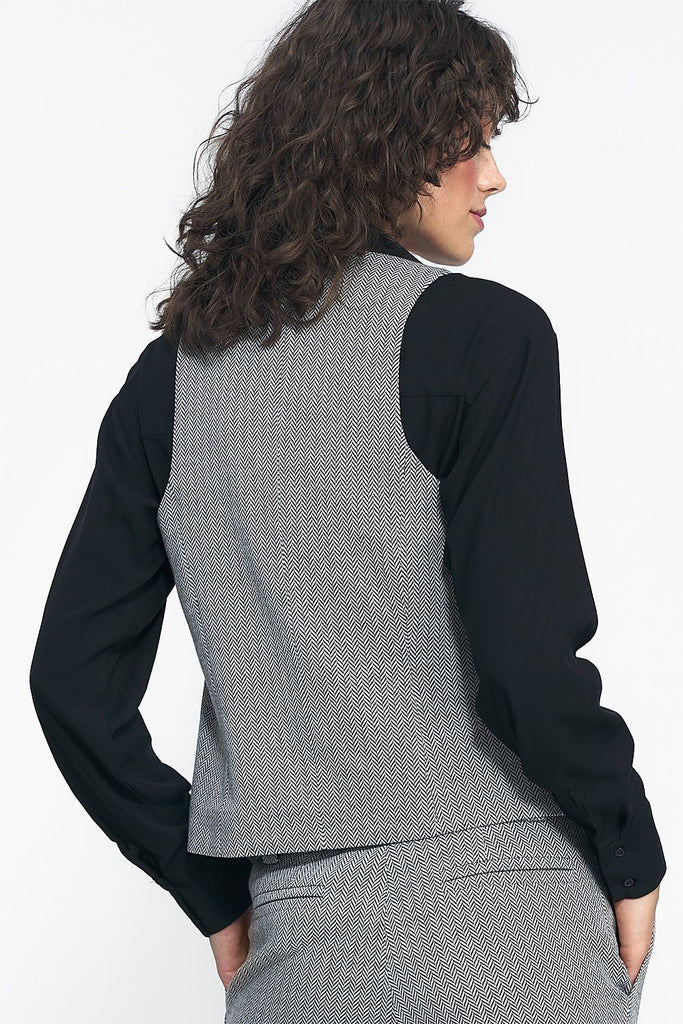 The black herringbone jacket has a short, straight cut that looks great with high-waisted pants and skirts. The minimalist cut works well in autumn urban styling for day and evening occasions. The jacket has fashionable and practical stitching and convenient pockets. It is a timeless piece of clothing. Waist measurements in the table given without stretching and after stretching the...