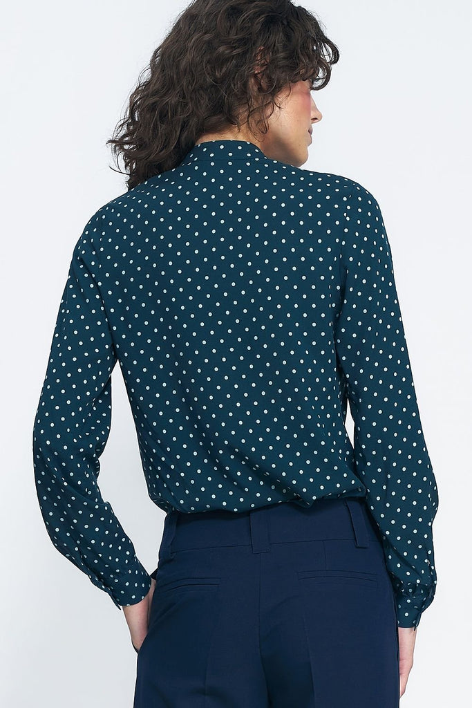 Another autumn proposal is a button-down shirt, with a simple cut with long sleeves, which are finished with cuffs and the neckline with a stand-up collar in charming peas. It will go well with suit sets in a variety of colors, and is the perfect base for business styling. An additional advantage is the 100% viscose material, which will make...