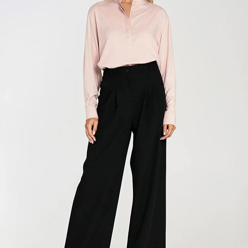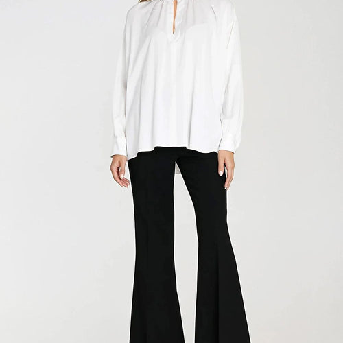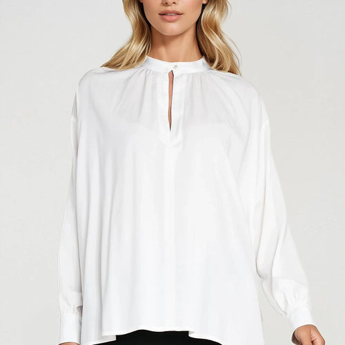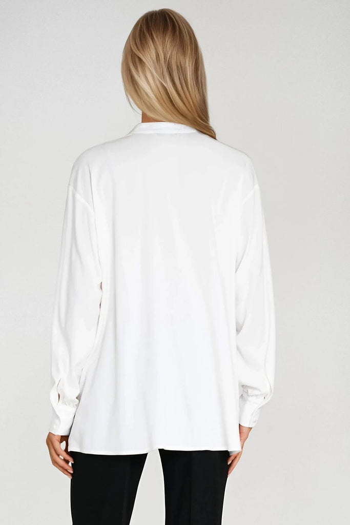 The modern women's oversized blouse is a combination of freedom and elegance. Made of lightweight and pleasant to the touch viscose, it ensures comfort throughout the day. The model has a polo neckline with a stand-up collar and long sleeves finished with a cuff, which gives the whole a classic character. The blouse is buttoned halfway with a covered placket,...