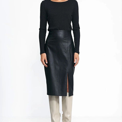 Pencil skirt made of eco-leather, made of high-quality material with viscose. On one side there is a striking slit that gives it character. The high waist visually slims the silhouette, and the fitted cut will emphasize your shapes. The midi skirt looks good with delicate tops or shirts, you can also match it with a blazer or bomber jacket. Polyurethane...