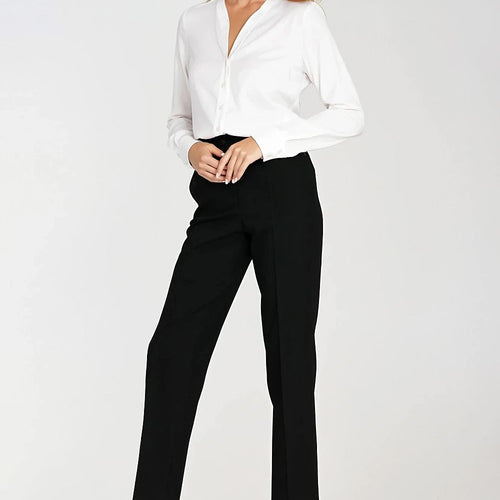 Classic women's blouse with a regular cut, made of light and breathable viscose. The model has a V-neck with a wide pleat, which visually slims the silhouette and adds elegance to the whole outfit. The blouse has long sleeves with cuffs and is put on over the head, which ensures comfort when wearing. The simple, timeless cut makes it perfect...