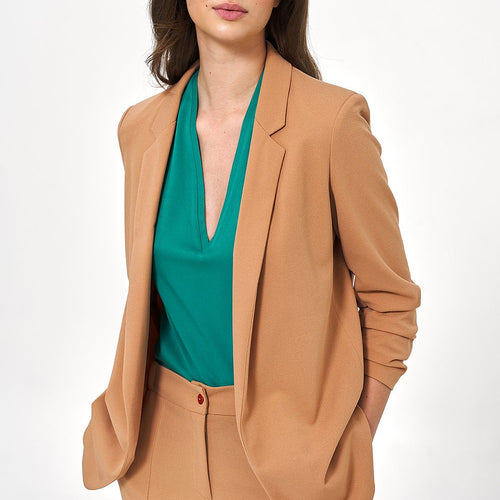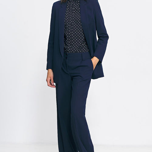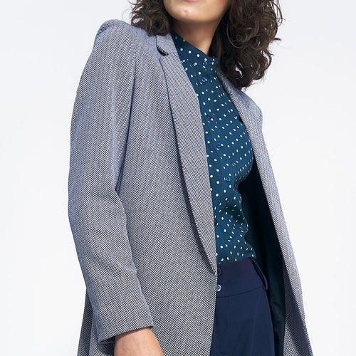An elegant unfastened blazer is an important element of a wardrobe with which you can create a modern women's suit. The classic cut and color of the blazer will allow you to use it in many ways. This model with lining will work well in office stylizations, but also looks great in a casual version when you are going for...