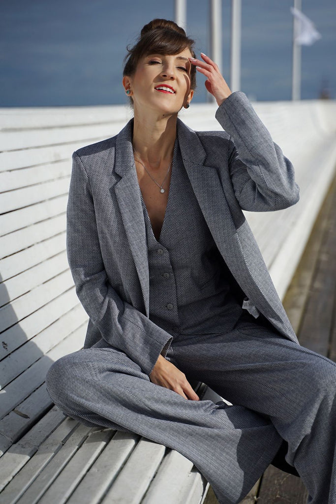 A well-tailored blazer is the foundation of every wardrobe. Simple in its cut, it will perfectly complement your work look and, thanks to the patterned cuffs, will add character to every after-hours outfit. It is an absolute must-have for the fall - winter season 2025! The blazer, along with trousers in the same pattern as the lining in the cuffs,...