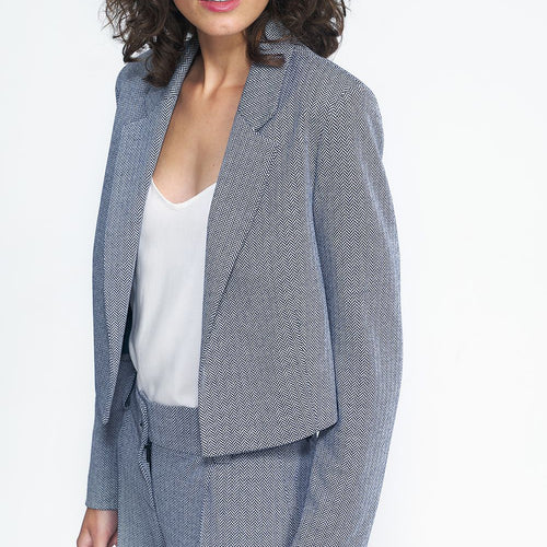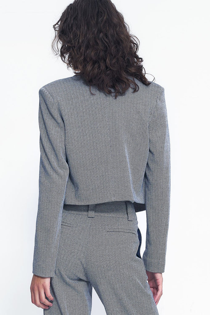 A short jacket with a classic, simple cut will perfectly complement soft office style outfits. Thanks to its minimalist form, it blends well with patterned skirts, shirts with original details, or bold jewelry. The soft touch material with a hint of viscose guarantees comfort and wearability throughout the day. Spandex 5 % Polyester 60 % Viscose 35 % Size Total...