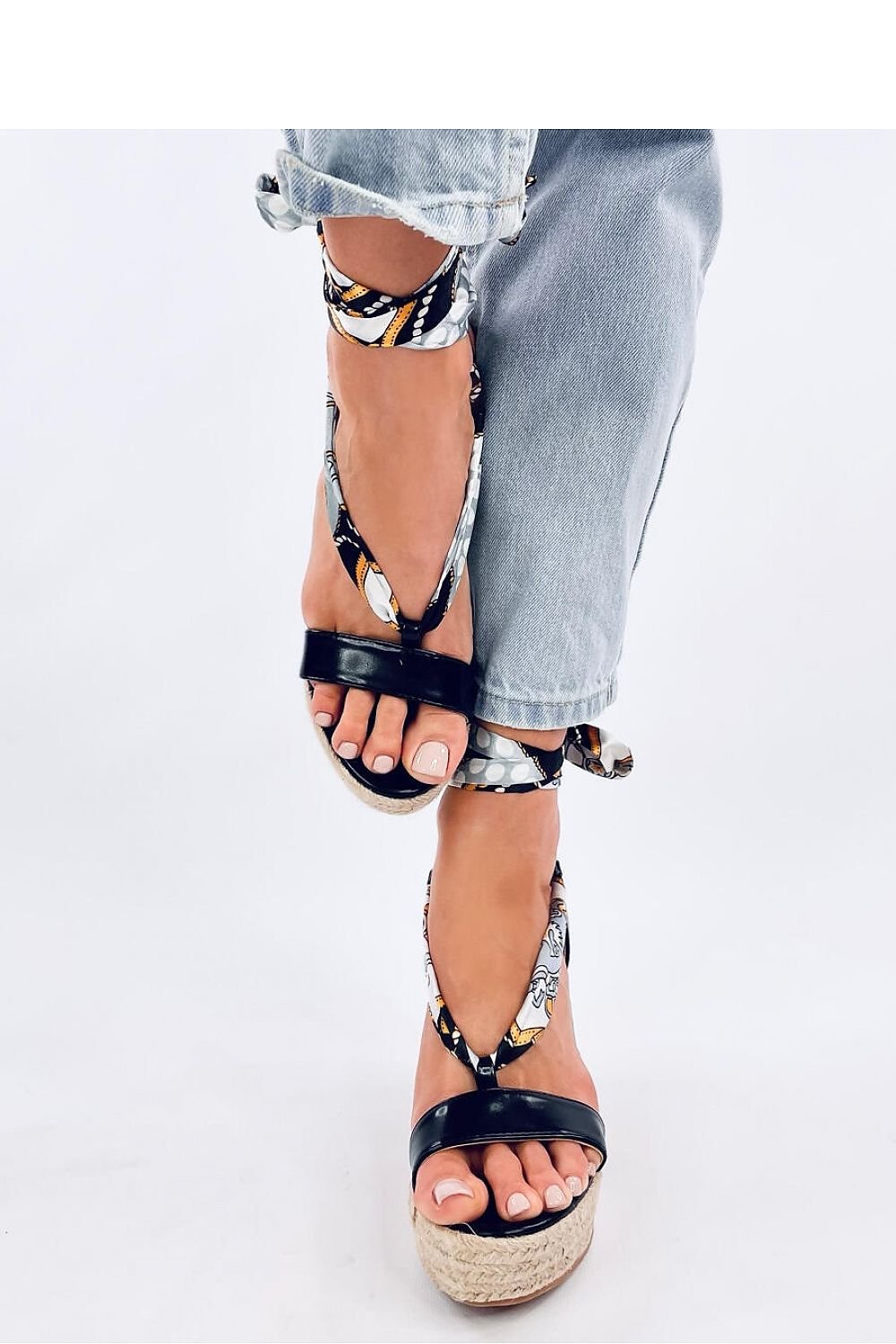 Tiered sandals - espadrilles for women. The 11 cm high anchor and 4 cm platform will make your legs fabulously long! Tying with a colorful scarf sensually emphasizes the foot, and the linen finish will give any styling a summer character. Outer material ? fabric + ecological leather.
