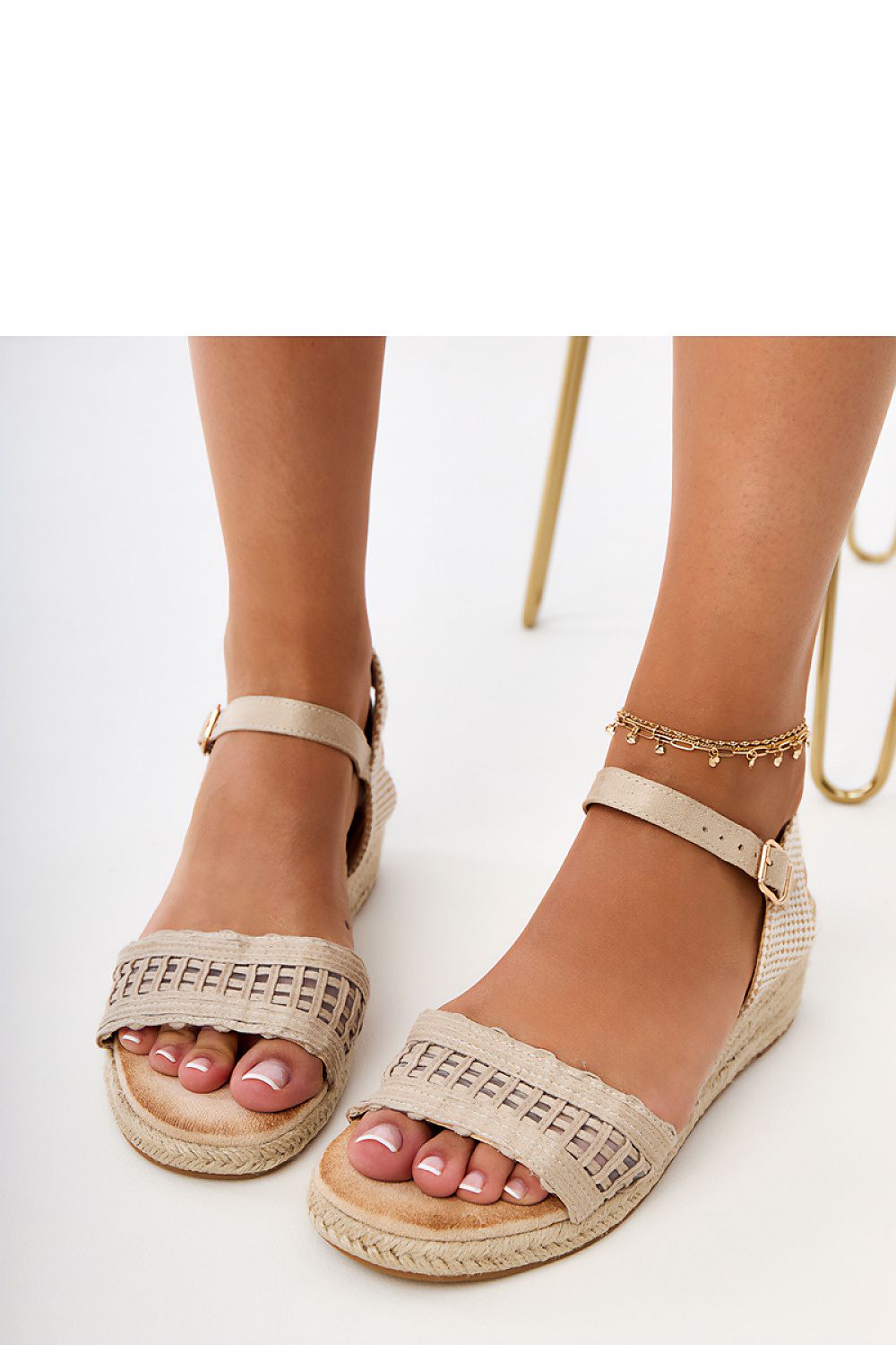 Wedge sandals are a stylish and comfortable option for warm days. Made of lightweight fabric, they look subtle and feminine, fitting perfectly into summer stylizations. The interior lined with suede-like eco leather ensures wearing comfort, even for many hours. The 5 cm wedge gently lifts the silhouette, without sacrificing comfort. The model fastens with a buckle, allowing for a perfect fit to the foot. The classic design without a pattern makes the sandals versatile and easy to match with various wardrobe items.